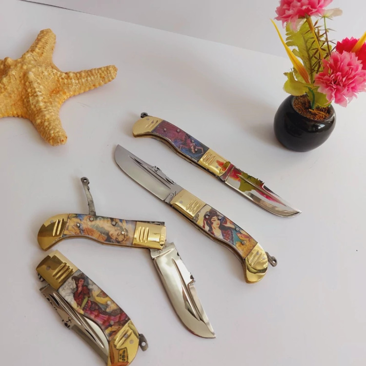 چاقو دنده ای استاد معرفت تیِغه فولاد فنر آب دیده.باربند برنجی.هزینه ارسال درب منزل پرداخت میکنید